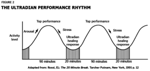 By design our body is set to work in cycles and schedules. We must listen to these natural cycles and carefully follow them in order to stay healthy as well as stay productive. This is exactly what the body of research on Ultradian performance rhythm suggests – featuring a 90-minute period of high frequency brain activity followed by a 20-minute period of low frequency brain activity.